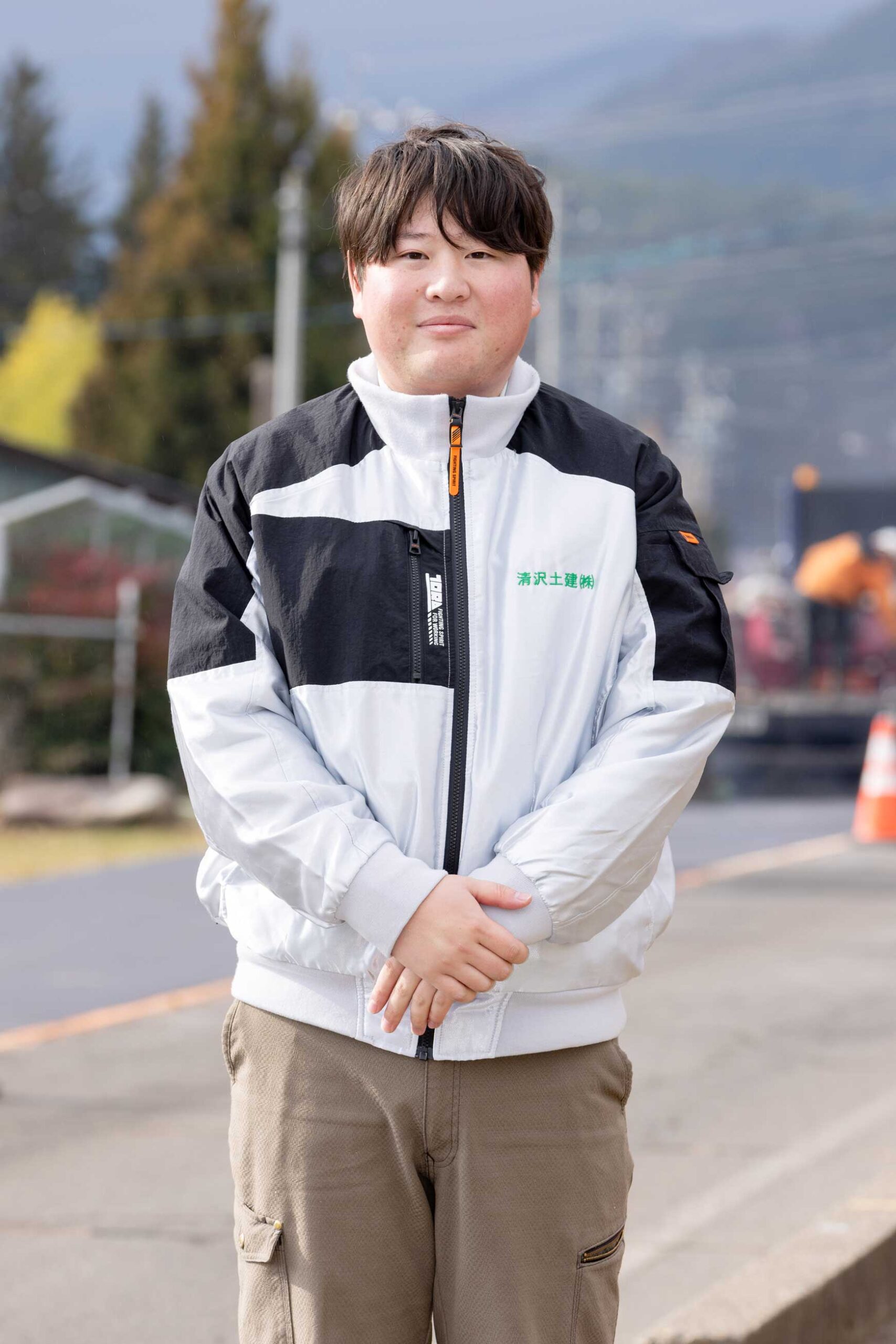 高校の先生からの推薦がきっかけで、清沢土建を知りました。 学校の先輩も多く働いていたため安心感があり、会社見学に参加した際には測量を体験させてもらいました。その時、社員の方が優しく丁寧に教えてくれたことが印象に残っています。現場の雰囲気も良く、「ここなら安心して働けそうだ」と感じて入社を決めました。